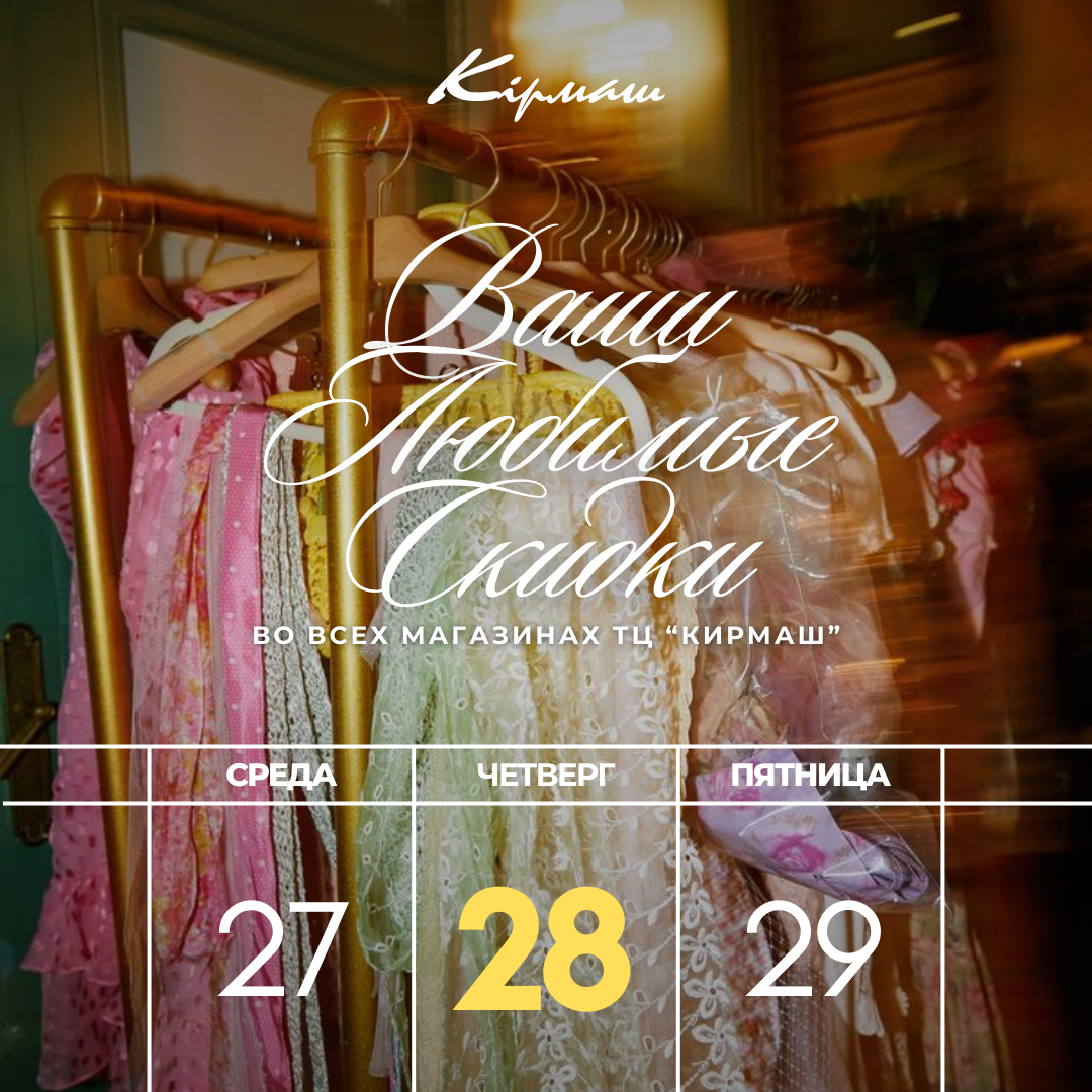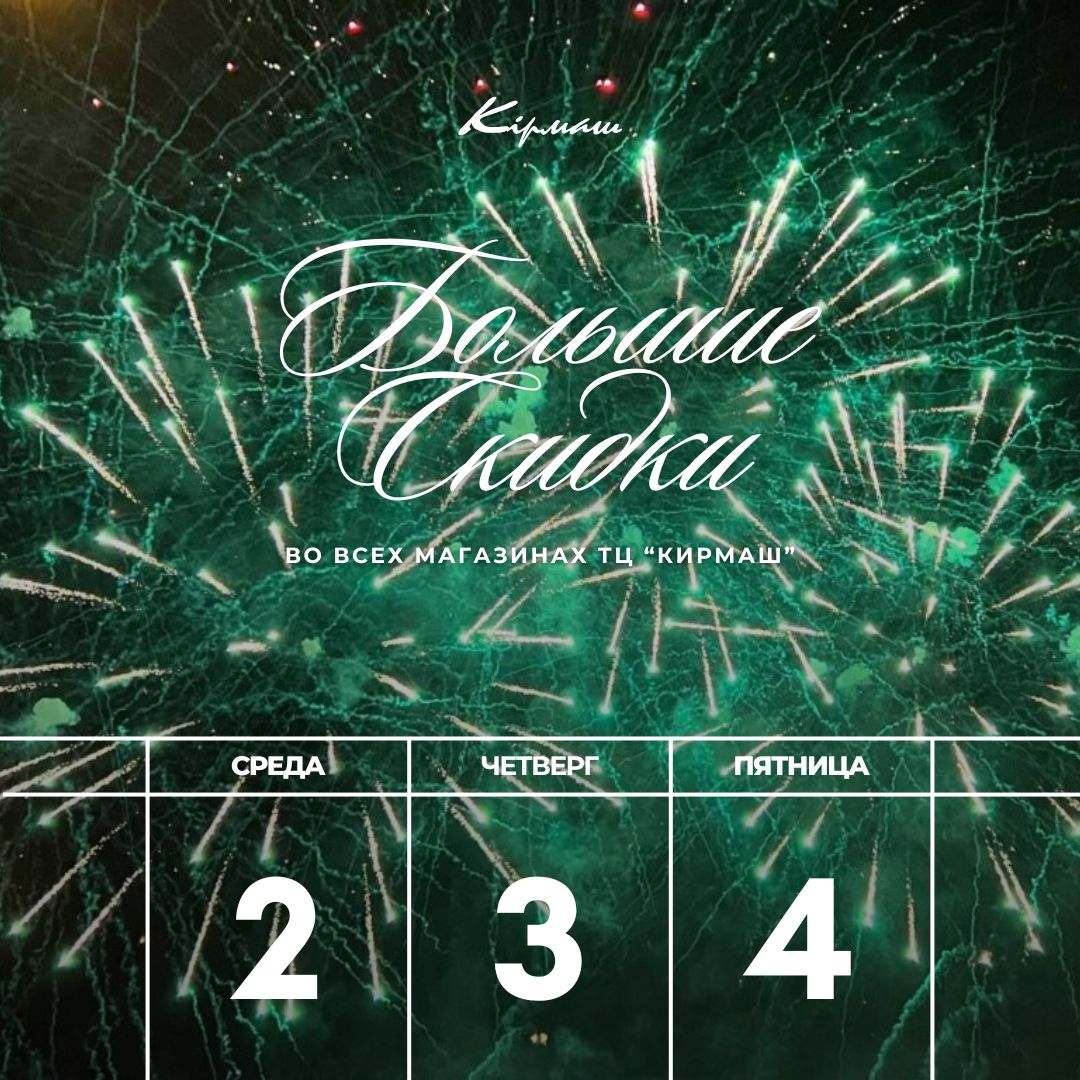 В ТЦ «КИРМАШ» в эту СРЕДУ, ЧЕТВЕРГ и ПЯТНИЦУ — ПОВЫШЕННЫЕ СКИДКИ! ❤️