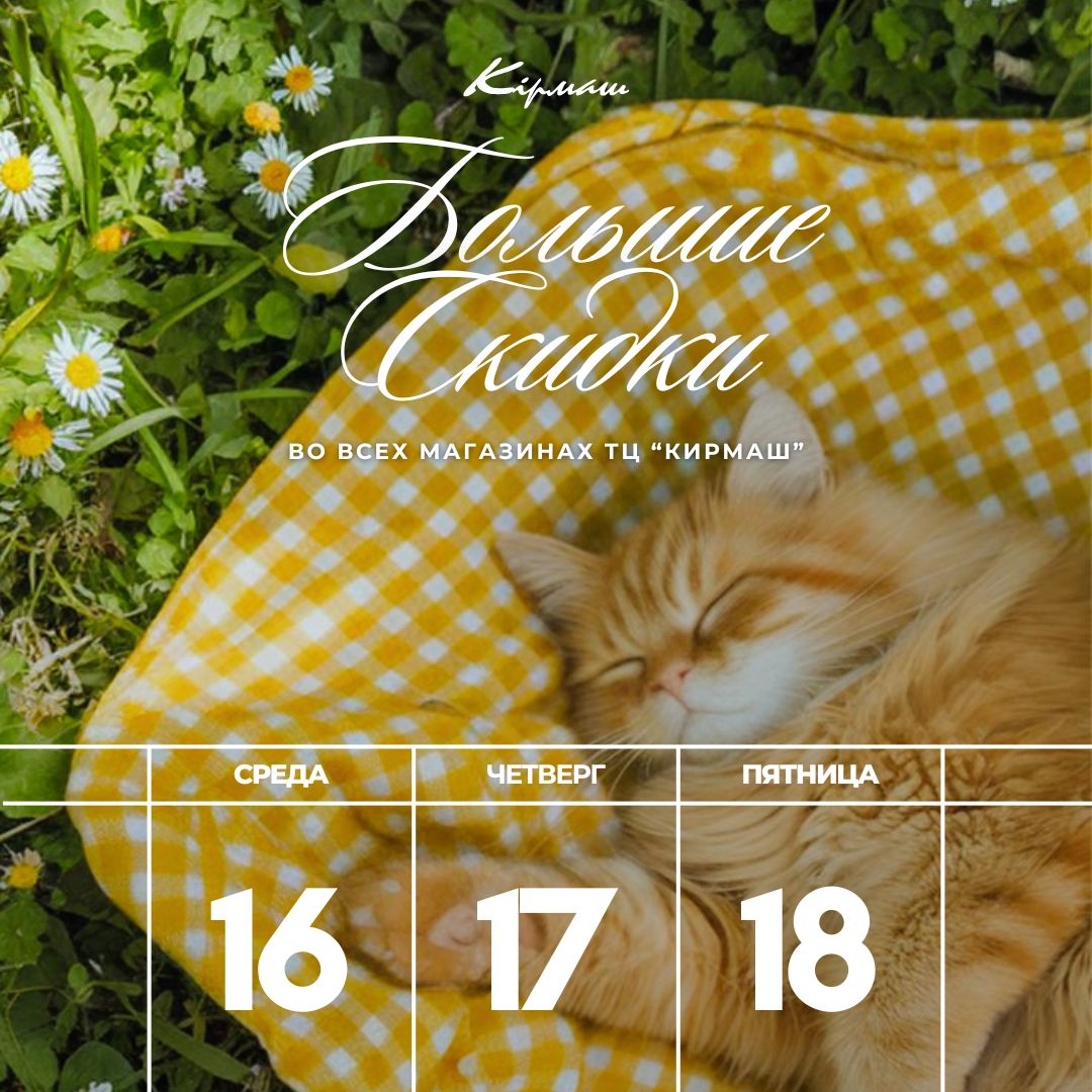 БОЛЬШИЕ СКИДКИ с 16 по 18 июля ВО ВСЕХ МАГАЗИНАХ ТЦ "КИРМАШ"