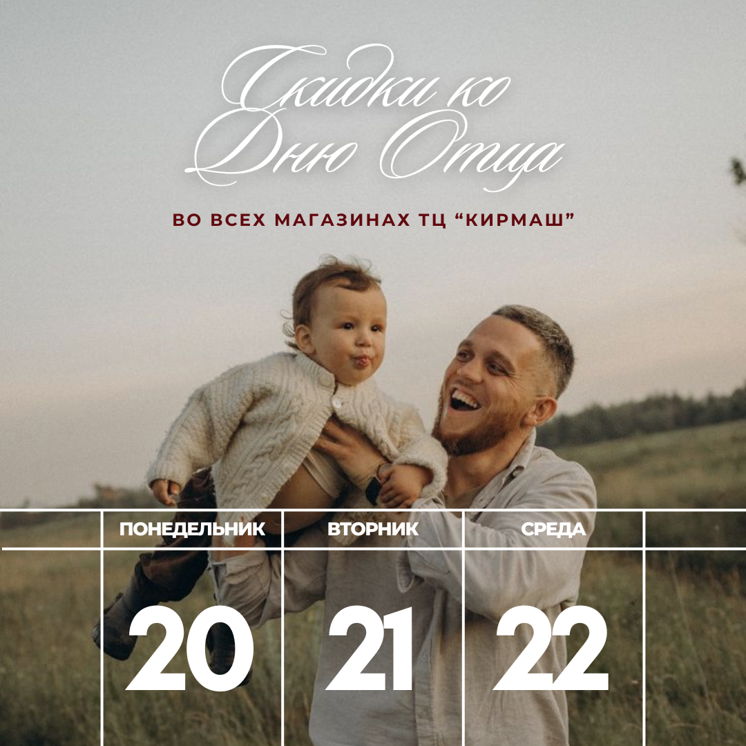 С ЛЮБОВЬЮ К ПАПАМ! ❤️ В ТЦ «КИРМАШ» в ПОНЕДЕЛЬНИК, ВТОРНИК и СРЕДУ — ПОВЫШЕННЫЕ СКИДКИ КО ДНЮ ОТЦА! ❤️