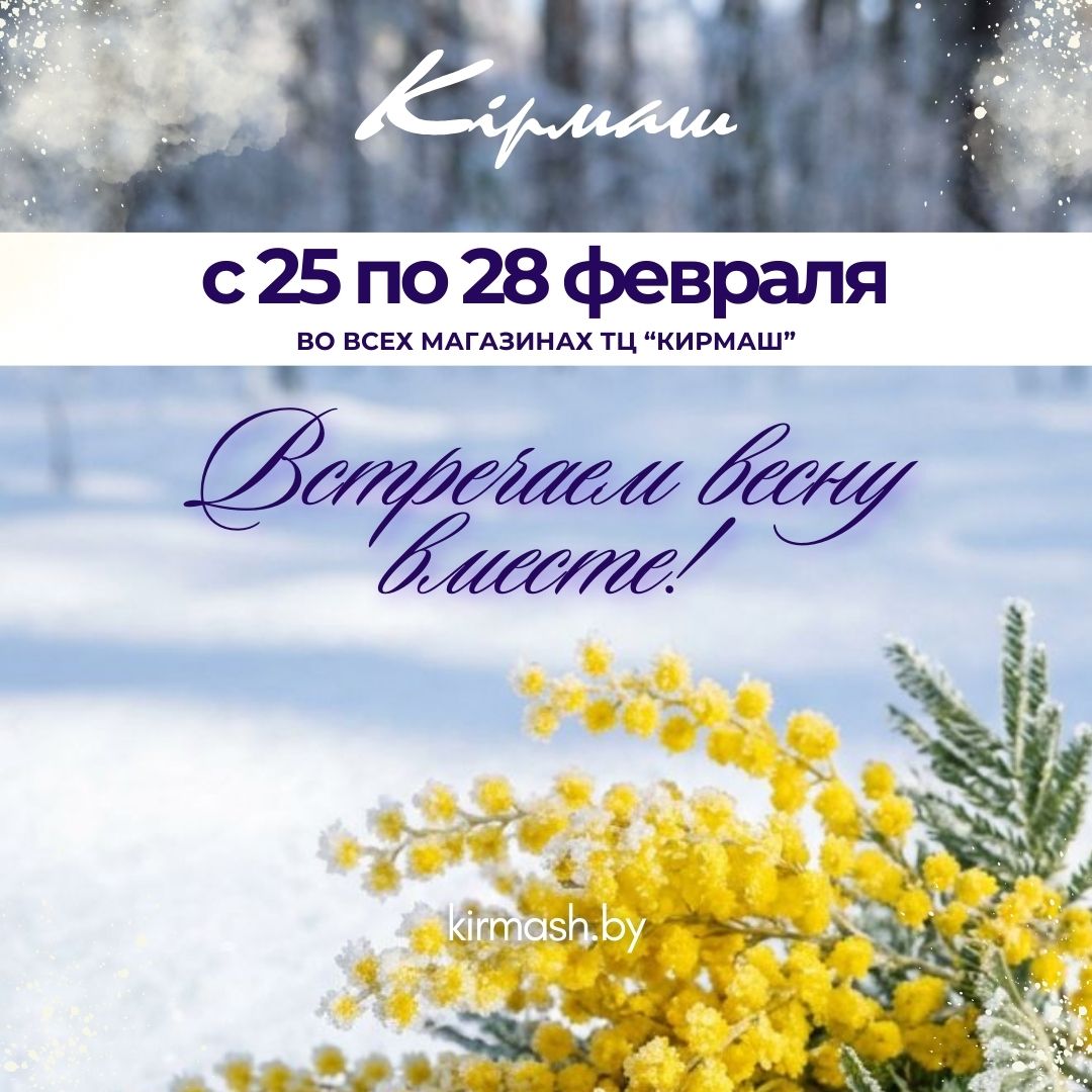 🌸 Весна близко! Время обновлений и ярких эмоций! С 25 по 28 февраля в ТЦ «КИРМАШ» дарим весеннее настроение и грандиозные скидки!