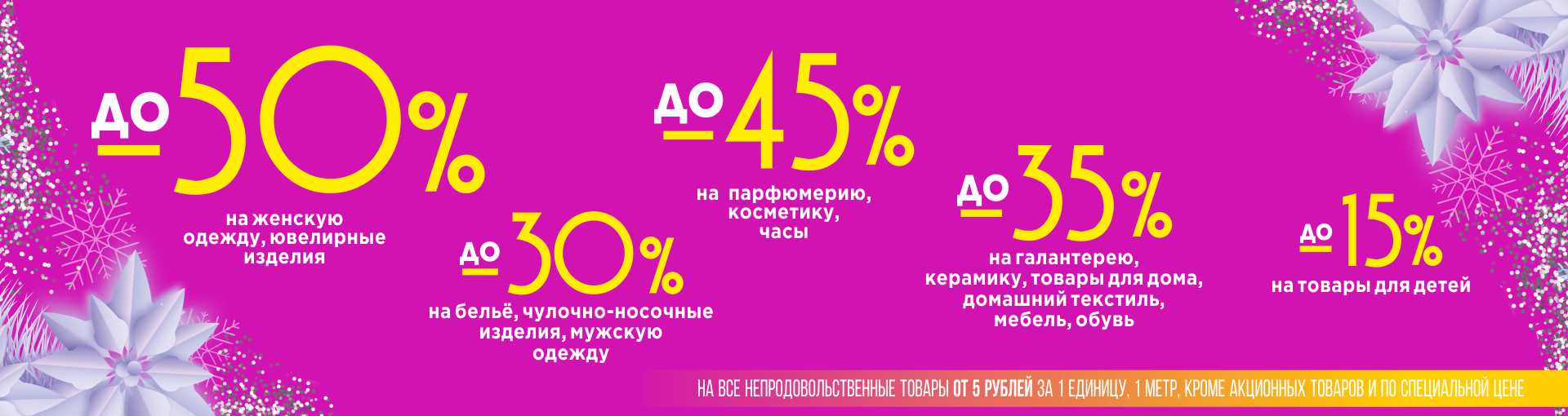 Обращаем внимание покупателей, что скидка предоставляется на товары ценой от 5-х рублей за 1 единицу, 1 метр.