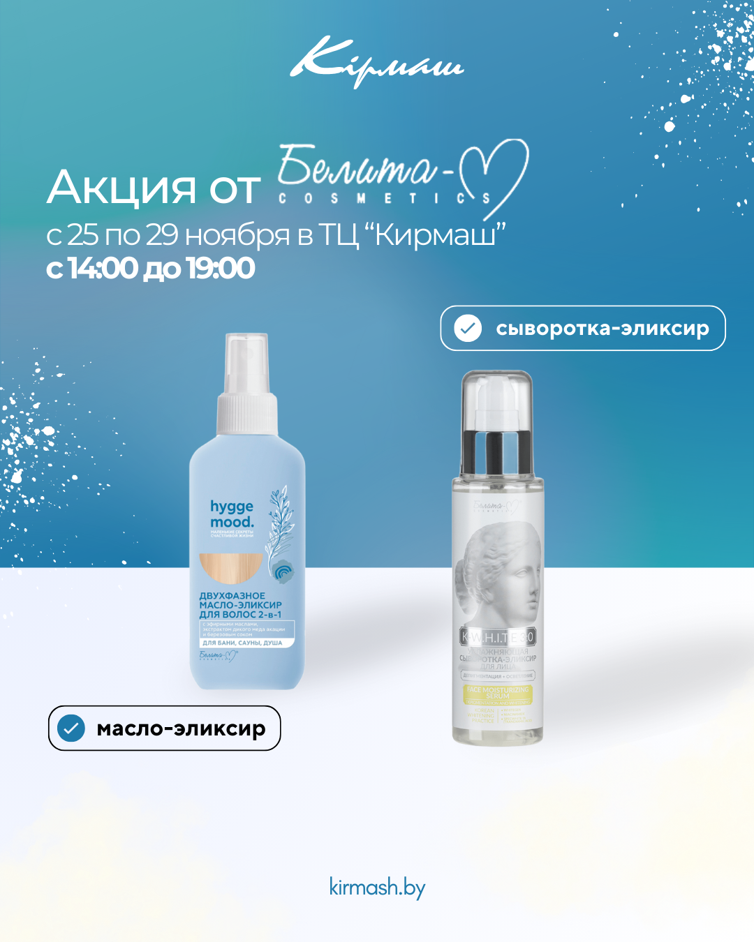 С 25 по 29 ноября в ТЦ «Кирмаш» нас ждет особенная неделя красоты от Белита-cosmetics! 🎁