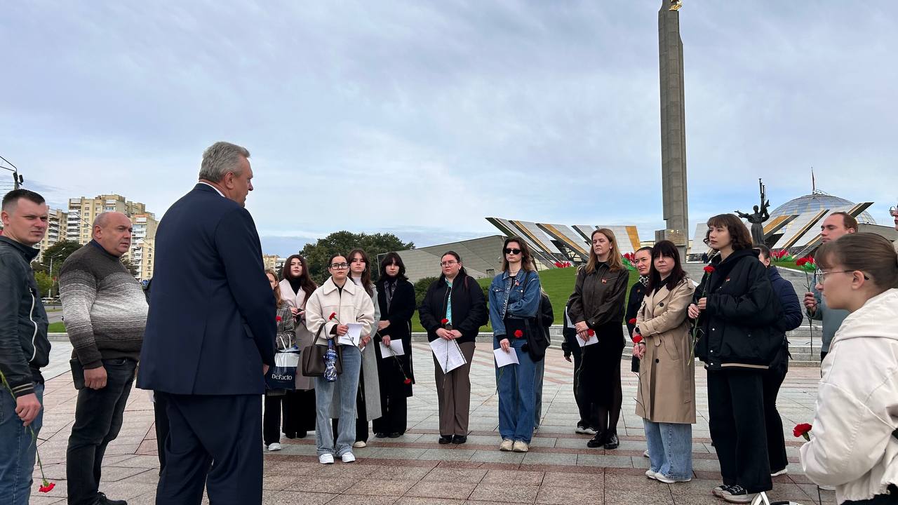 Участники встречи возложили цветы к Стеле «Минск — город-герой». Этот монумент, символизирующий мужество и несгибаемую волю белорусского народа, стал местом, где работники «Кирмаш» и ГПТО «Белхудожпромыслы» отдали дань уважения героям, отстоявшим свободу и независимость Родины. В едином строю, с цветами в руках, они почтили минутой молчания память павших за мирное небо над головой.