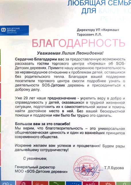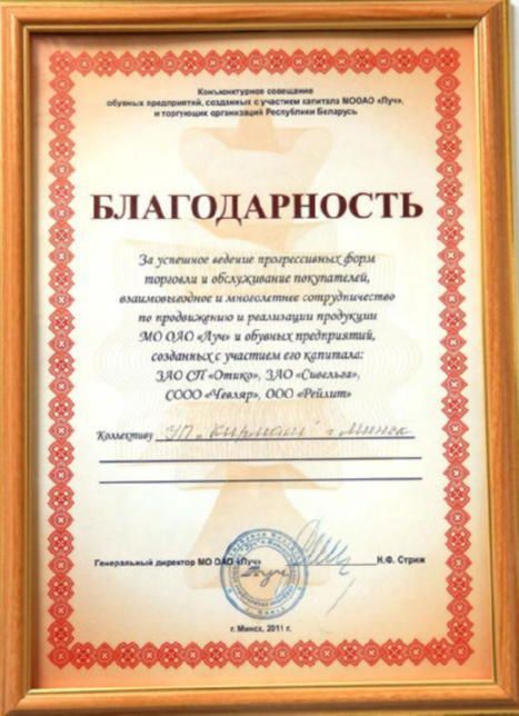 В 2021 году мы отметили 30-летний юбилей и получили множество наград. Одна из них - директор Тарасевич Л.Л. награждена знаком МАРТ "Выдатнiк гандлю".