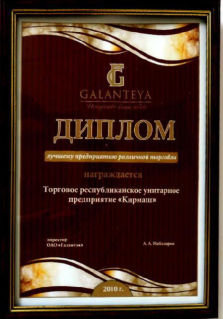 По итогам 2010 года «Кирмаш» занял второе место в городском смотре-конкурсе на лучшую организацию идеологической работы среди предприятий торговли.