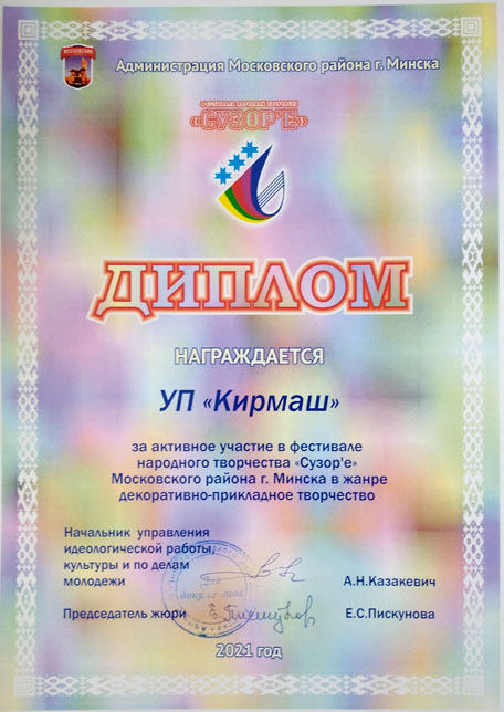 В июле 2011 года «Кирмаш» отпраздновал свой 20-летний юбилей. К этой памятной дате коллектив предприятия был награжден почетной грамотой Управления делами Президента РБ и Администрацией Московского района, директор — почетной грамотой Мингорисполкома и благодарностью Минского горкома профсоюза работников местной промышленности и коммунально-бытовых предприятий.