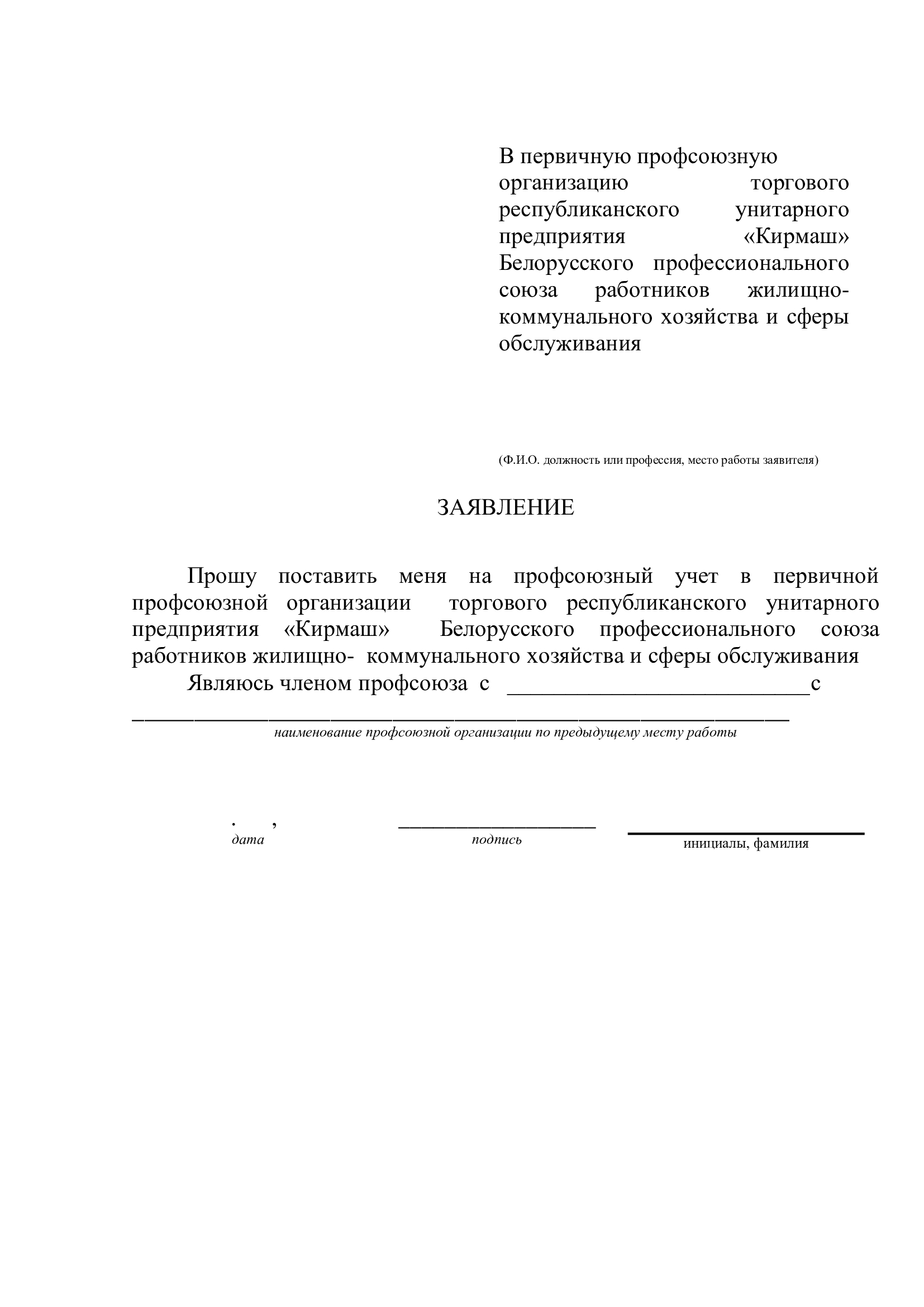 Образцы заявлений