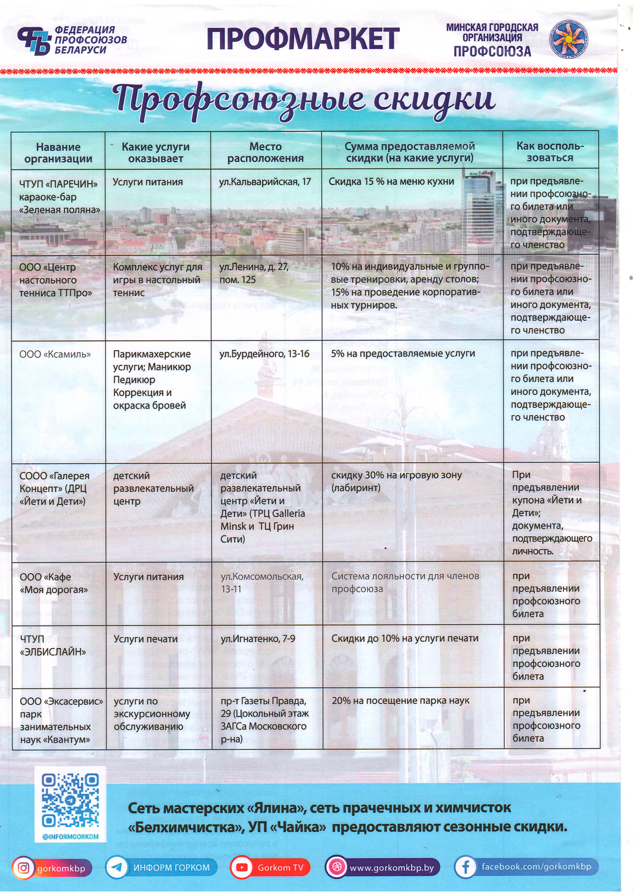 Профсоюзные скидки