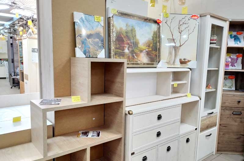 На первом этаже торгового центра в отделе "Мебель" представлена корпусная и мягкая мебель минских и гомельских, брестских и лидских, могилевских и витебских предприятий. Здесь же можно приобрести светильники и картины, зеркала и карнизы, брестские и витебские ковры. Есть отличный выбор бытовой техники и хозяйственных товаров, керамики и сувениров, часов и канцтоваров, домашнего текстиля и товаров для детей. Следует отметить гончарные изделия и посуду ивенецких мастеров и «Белхудожкерамики», сувениры Пинской, Бобруйской и Хойникской ФХИ, гомельской «Любны», Брестской, Могилевской и Мозырской фабрик художественных изделий, ткацкие льняные изделия Слуцка и Орши.