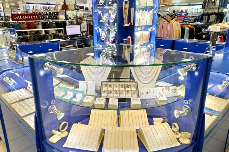В отделе ювелирных изделий - большой выбор украшений из золота и серебра, большинство из них представлены такими крупными брендами, как гомельский "Кристалл" и минская «Зорка».