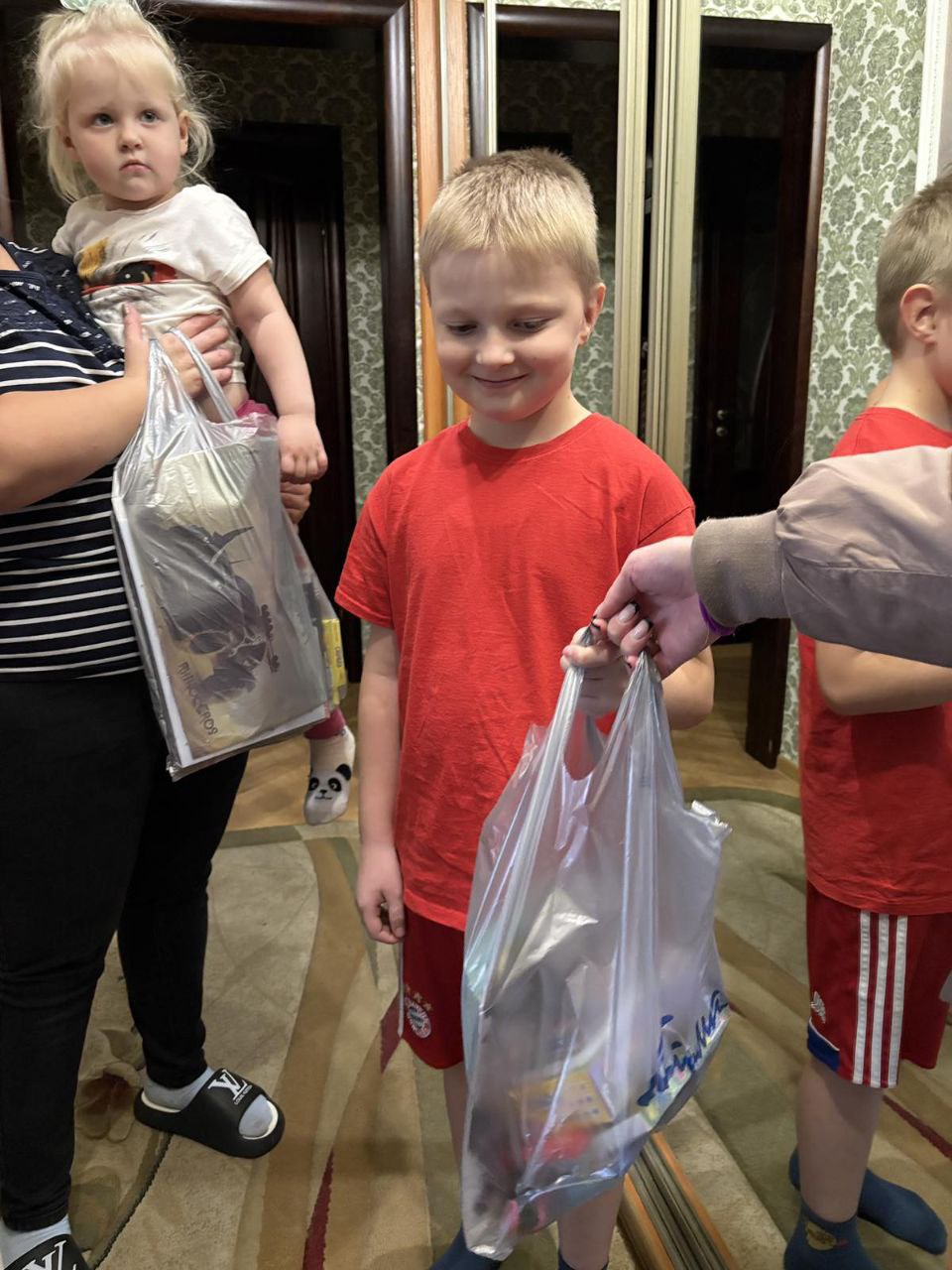 Чтобы дети в этих семьях могли с пользой проводить время и развивать свои таланты, мы вручили им наборы для творчества и наборы канцелярских товаров.
