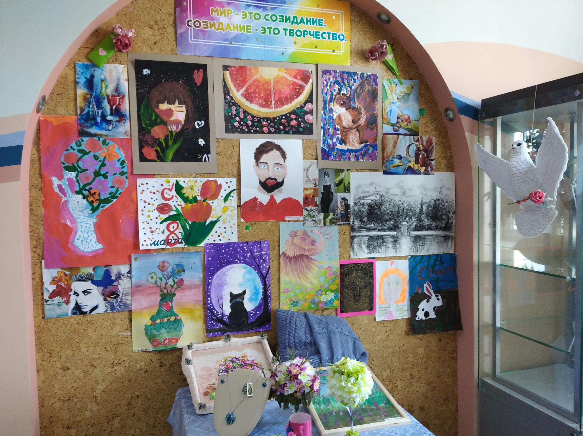 А сейчас проходит интересный конкурс декоративных работ наших сотрудников и их детей. Работы экспонированы, т.е. создана выставка, девиз которой: «Мир это созидание. Созидание – это творчество». Выставка посвящена проходящему в Республике Беларусь в 2023 году мира и созидания. По ее итогам победители будут награждены призами.