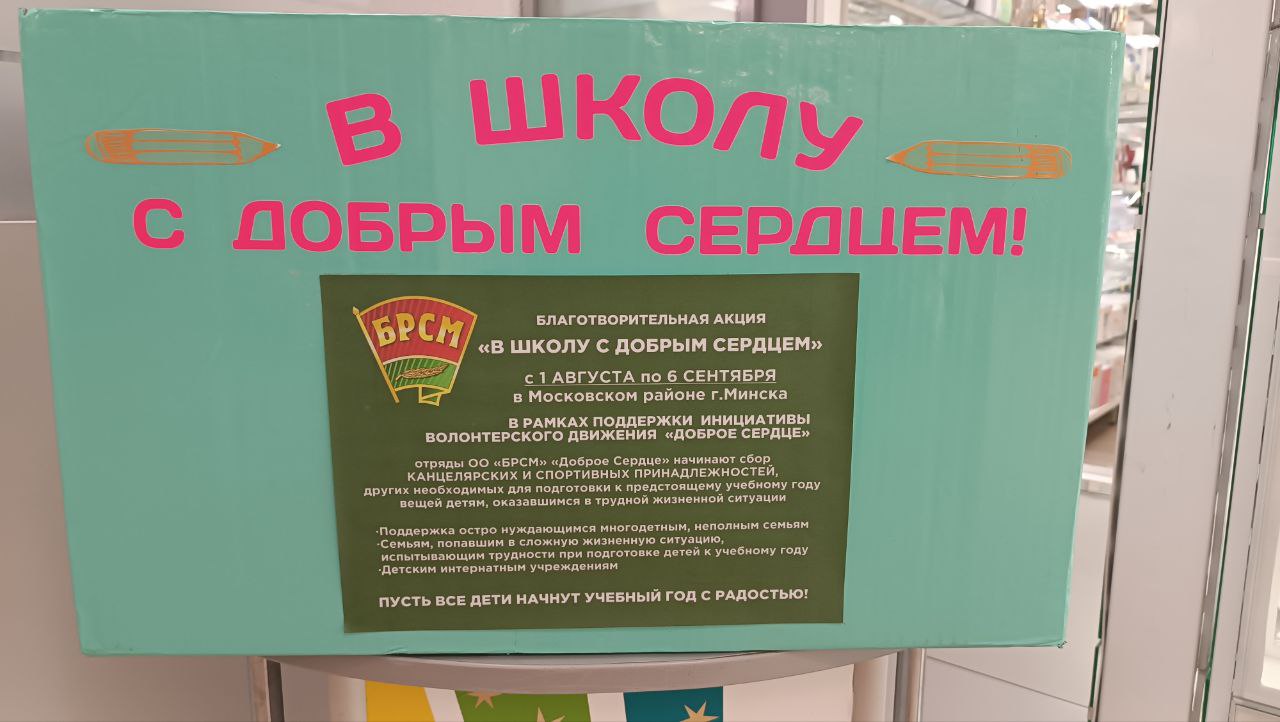 Также члены первичной организации "БРСМ" и "Белая Русь" УП "Кирмаш" организовали пункты сбора канцелярских принадлежностей, учебных пособий, спортивных товаров, товаров детского творчества, развивающих настольных игр, других вещей, необходимых детям для подготовки к предстоящему учебному году.