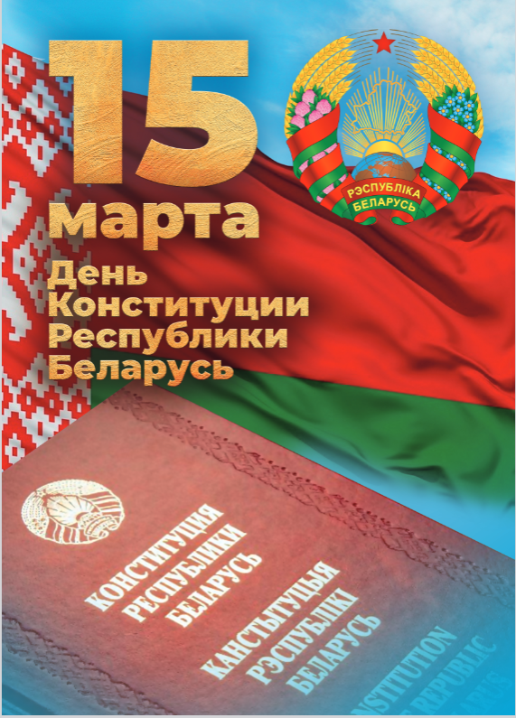 Конституция Беларуси была принята 15 марта 1994 года. Она впервые в истории белорусской государственности закрепила статус республики как унитарного демократического социального правового государства, установила принципы демократического строя, приоритет прав и свобод человека, главенство международного права. Кроме того, Конституцией впервые в истории страны в системе высших органов государственной власти предусмотрена должность Президента Республики Беларусь. Этот документ заложил прочный правовой фундамент независимости, реализовал стремление белорусского народа быть полноправным хозяином на родной земле. 15 марта ежегодно отмечается государственный праздник - День Конституции Республики Беларусь.