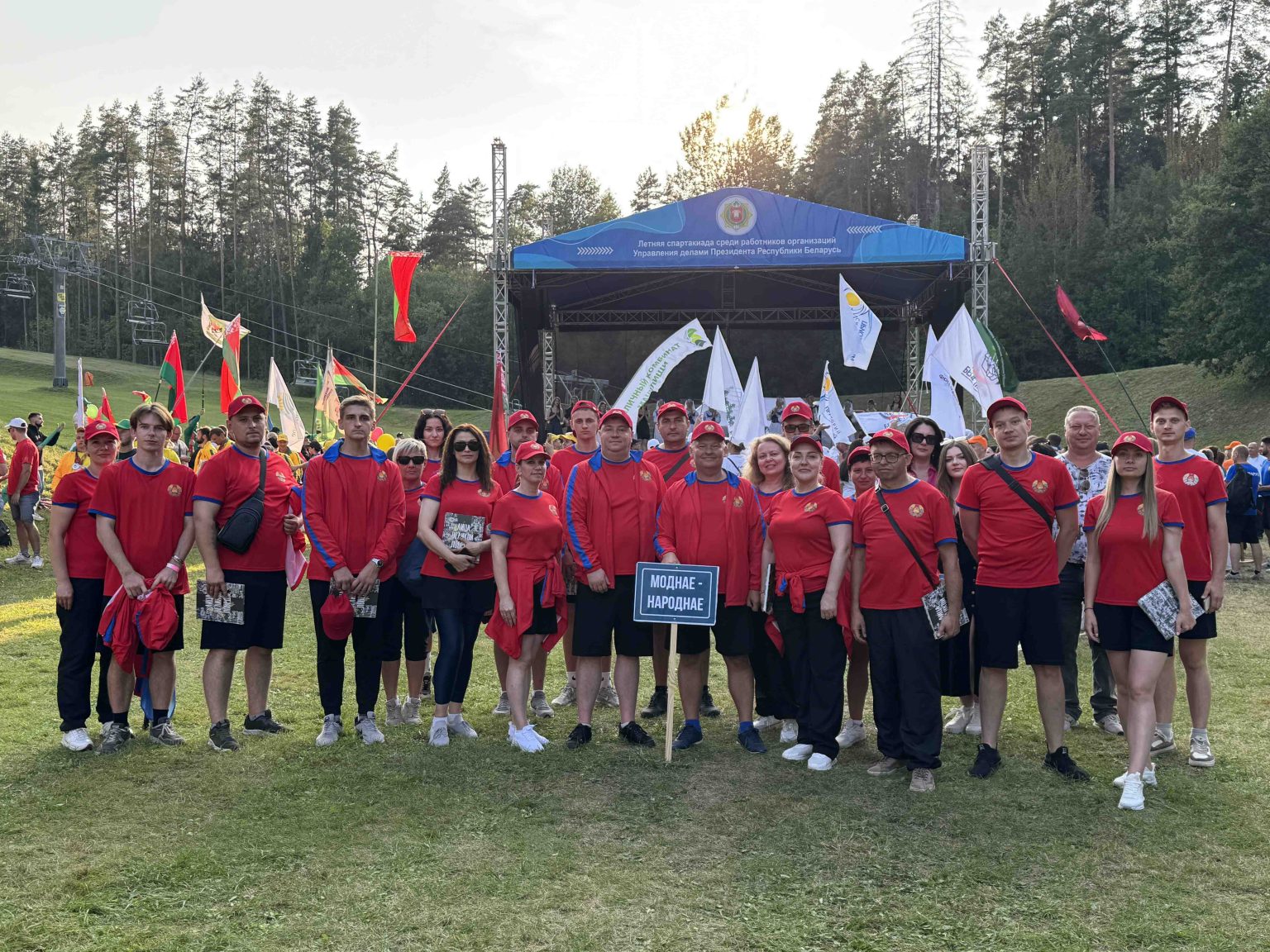 Сотрудники УП "Кирмаш", Усольцева Елена и Алейников Денис, приняли участие в летней спартакиаде в составе сборной команды организаций объединения "Белхудожпромыслы" "Модное-Народное".